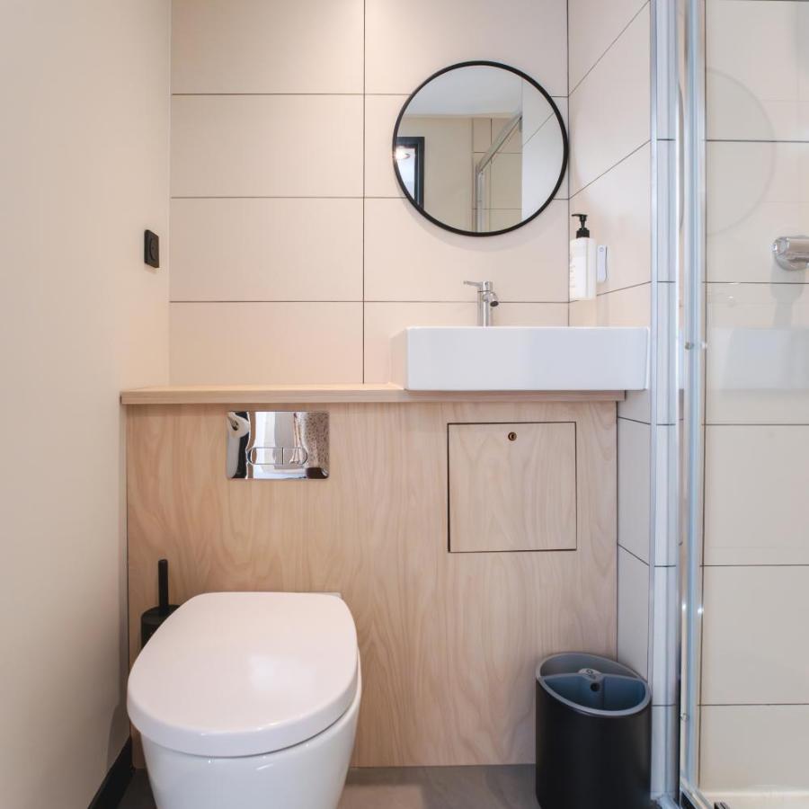 Jedes Zimmer ist mit einem Flachbildfernseher und schnellem WLAN ausgestattet. Die Temperatur kann individuell eingestellt werden, sodass sie sich an die Vorlieben jedes Gastes anpassen lässt, sowohl im Sommer als auch im Winter. Obwohl die Möbel auf das Wesentliche reduziert sind, bleibt das Gesamtbild funktional, sauber und in gutem Zustand. Der Umgang mit dem Raum ist schlicht und effizient, gedacht für kurze Aufenthalte und einfache Bedürfnisse.