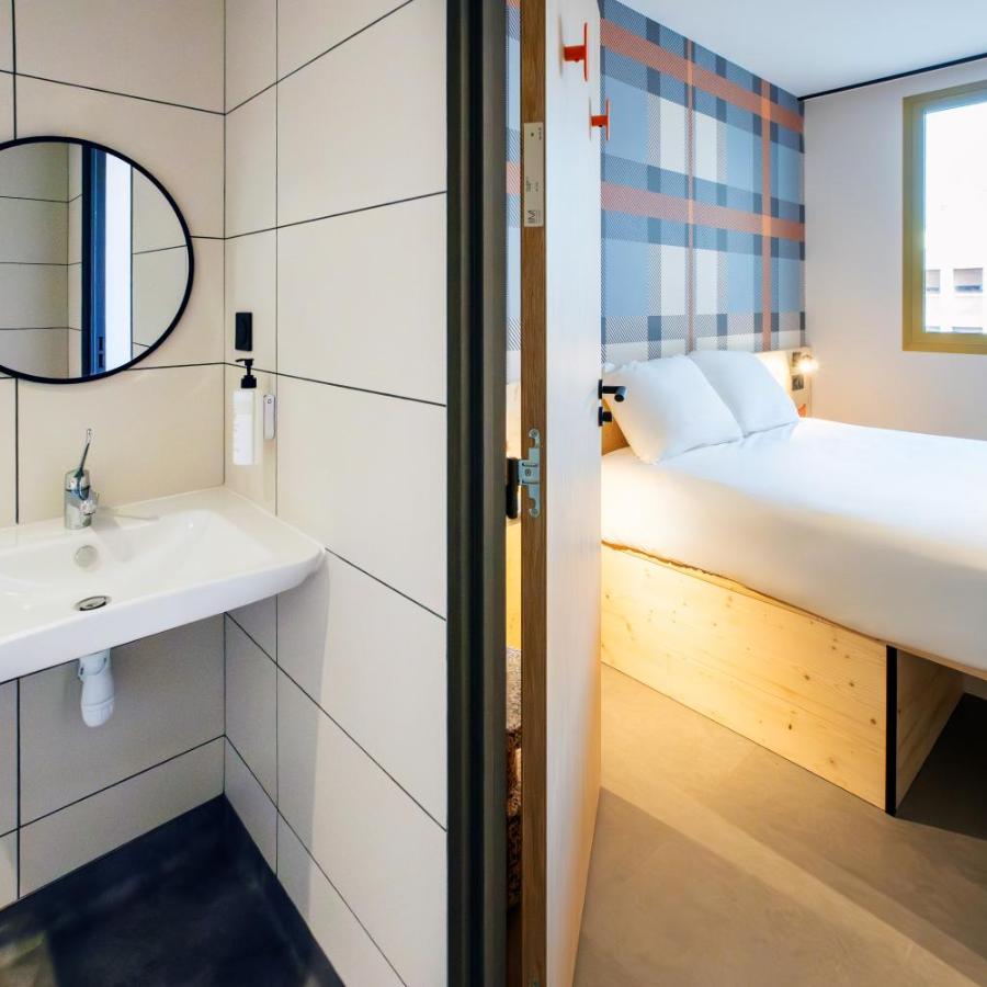 Das Hotel verfügt über 111 funktional gestaltete Zimmer, die darauf ausgelegt sind, Reisende aufzunehmen, die effektive Erholung suchen. Mit einer optimierten Fläche von etwa 12 m² sind die Zimmer klimatisiert, verfügen über ein Doppelbett oder zwei Einzelbetten und sind alle mit einem eigenen Badezimmer mit Dusche, Bettwäsche, Pflegeprodukten und Haartrockner ausgestattet. Verdunkelungsvorhänge sorgen für völlige Dunkelheit, die durch die Schalldämmung der Räumlichkeiten verstärkt wird, und ermöglichen so eine ungestörte Erholung auch tagsüber.