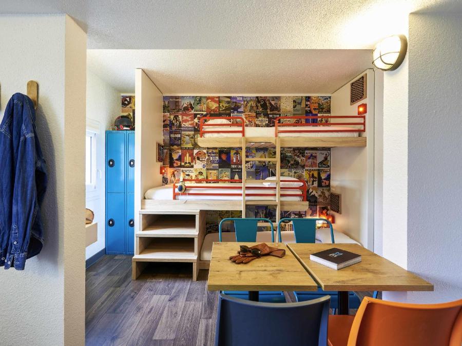 Die Vielfalt der angebotenen Unterkünfte ermöglicht es jedem, eine passende Lösung zu finden. Das Cabrio-Zimmer, in einem intimeren Format, umfasst ein Doppelbett und ein Badezimmer mit Dusche und integrierter Toilette. Andere Optionen, wie die Tandem- oder Side-Car-Zimmer, bieten Platz für zwei Personen mit einem privaten Waschbecken und Zugang zu gemeinschaftlichen Sanitäreinrichtungen in der Nähe. Einige Konfigurationen können bis zu drei Personen aufnehmen, wie das Break-Zimmer mit Etagen-Einzelbetten oder das Trio-Zimmer mit Doppelbett und Hochbett.