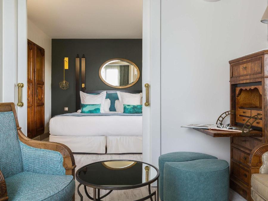 Hinter seiner klassischen Fassade und den azurblauen Fensterläden bietet das Hotel sorgfältig eingerichtete Zimmer und Suiten mit Möbeln im Empire- und Napoleon-III-Stil, die an die glanzvollen Zeiten der Geschichte des Ortes erinnern. Jedes Zimmer, ausgestattet mit eleganter Einrichtung und durchdachtem Komfort, bietet eine Oase der Ruhe gegenüber dem Trubel des Hafens. Einige Zimmer bieten privilegierte Ausblicke auf den Vieux-Port, sodass Sie ein lebendiges und ständig wechselndes Panorama genießen können. Hochwertige Bettwäsche, provenzalische Stoffmuster und sorgfältige Details wie Spiegel und farbige Stoffe tragen dazu bei, eine gedämpfte und gemütliche Atmosphäre zu schaffen.