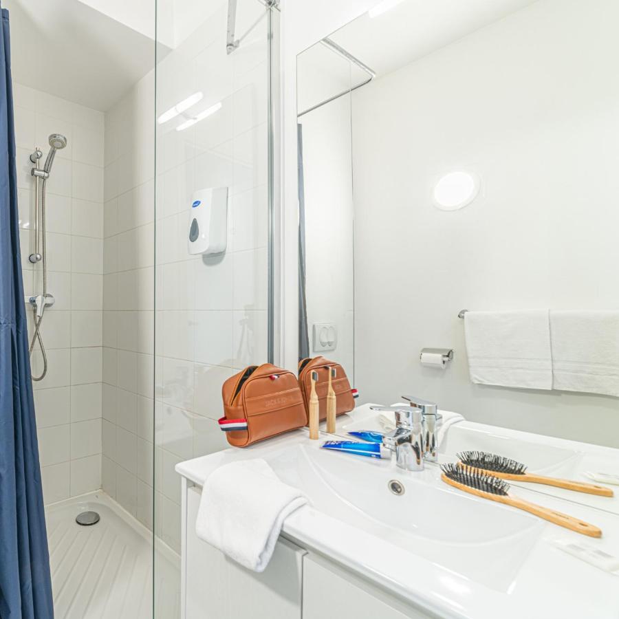 Die Wohnräume sind so konzipiert, dass sie Komfort und Einfachheit vereinen. Sie verfügen über ein 19 m² großes Studio, das für eine oder zwei Personen ausgestattet ist, mit einem Doppelbett oder zwei Einzelbetten je nach gewählter Konfiguration. Jede Unterkunft umfasst eine gut durchdachte Küchenzeile mit Kühlschrank, Kochfeld, Mikrowelle, Geschirr und Kochutensilien. So können Sie Ihre Mahlzeiten völlig unabhängig zubereiten – ein echter Vorteil für längere Aufenthalte.