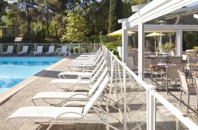 Freizeitliebhaber finden ebenfalls zahlreiche Möglichkeiten, um ihren Aufenthalt zu bereichern. Neben dem großen Pool, der von Liegestühlen und Sonnenschirmen umgeben ist, bietet das Hotel verschiedene Aktivitäten im Freien, wie einen Tennisplatz, ein Boulefeld und eine Tischtennisplatte. Familien werden den Kinderspielplatz zu schätzen wissen, während sich die älteren Gäste mit einem Flipperautomaten oder Dartspielen vergnügen können. Diese Kombination aus Einrichtungen macht den Ort ideal für Entspannung nach einem erfüllten Tag in der Phokäerstadt.