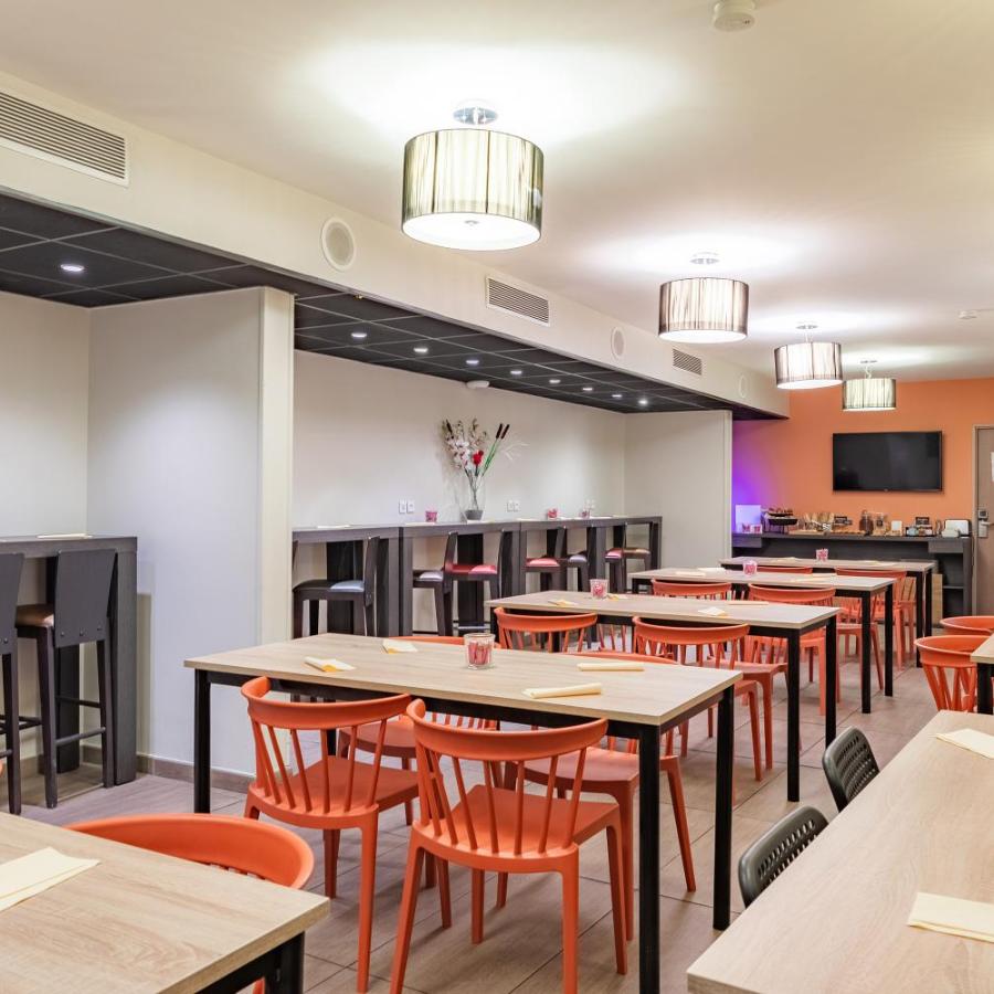 Um den Tag gut zu beginnen, wird jeden Morgen ein Frühstücksbuffet in einem gemütlichen Raum angeboten. Eine vielfältige Auswahl ermöglicht es, eine Mahlzeit nach Ihren Gewohnheiten zusammenzustellen, von Gebäck über herzhafte Produkte, Heißgetränke bis hin zu ausgewogenen Optionen. Die erweiterten Öffnungszeiten erlauben es, das Frühstück ohne Einschränkungen zu genießen, egal ob Frühaufsteher oder Anhänger eines flexibleren Rhythmus.