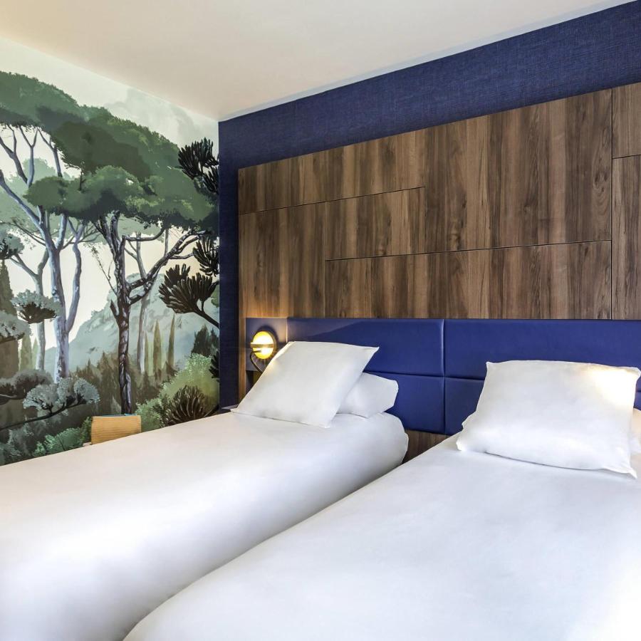 Rooms come in six categories to suit different needs. The classic twenty-square-meter rooms are available in two versions: city view with a double bed or two single beds, and garden view with a double bed. These spaces feature personalized décor combining classic elements and modern touches, avoiding the uniformity of chain establishments. High-quality bedding ensures restful nights.