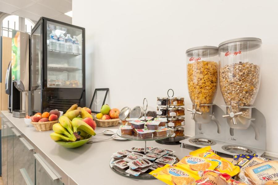 The establishment is housed in a listed building, giving it a discreet yet distinct personality. Inside, the spaces have been renovated with simplicity: light parquet floors, functional furniture, and a few colorful touches. The overall atmosphere is calm and orderly, perfect for resting after a day in the bustle of the city.