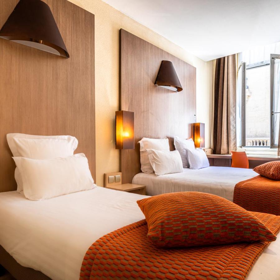 El hotel Carré Vieux Port se compone de 61 habitaciones distribuidas en cinco plantas, servidas por un ascensor moderno y luminoso. Cada habitación ha sido diseñada para ofrecer comodidad y practicidad, con una decoración contemporánea en tonos sobrios y elegantes. La insonorización cuidadosa asegura una noche tranquila a pesar de la proximidad del animado barrio del Vieux-Port. En cada habitación encontrará una cama de calidad, aire acondicionado individual y un televisor LCD conectado para relajarse después de un día ajetreado. También se dispone de una bandeja de cortesía con té, café y galletas, así como de productos de bienvenida en el baño.