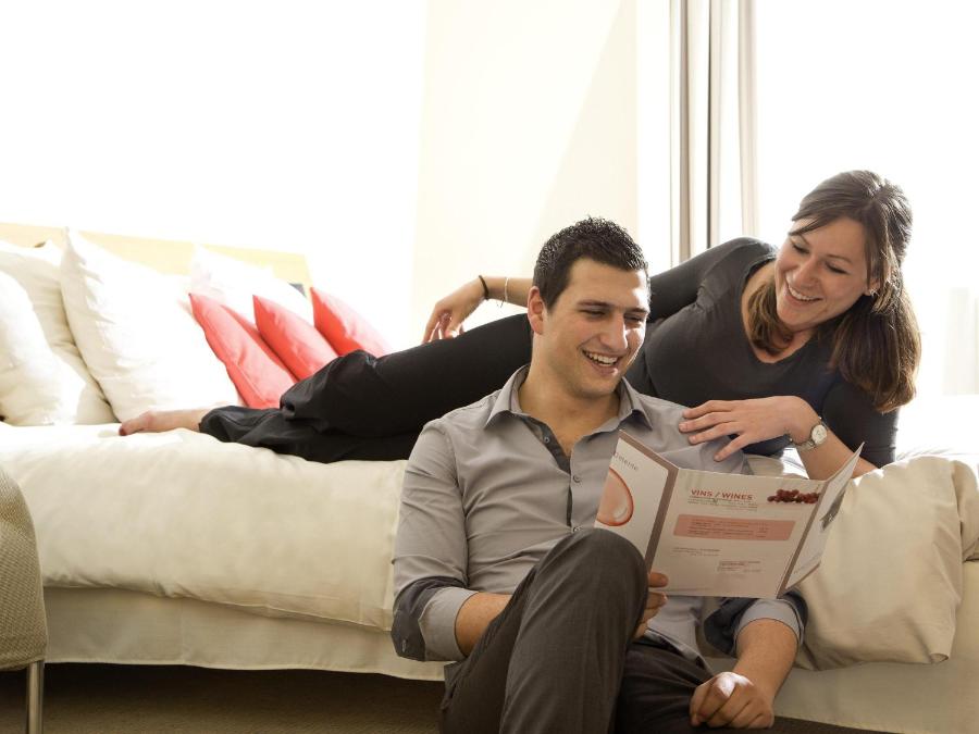 En las áreas comunes, los ambientes varían entre convivialidad y serenidad. Podrá elegir compartir un momento en el bar interior, pasear por la terraza del restaurante o instalarse junto a la piscina, con Marsella como telón de fondo. El espacio de bienestar completa la experiencia: sala de fitness, tratamientos corporales y piscina exterior climatizada le invitan a cuidarse a su ritmo, entre visitas o al final del día.