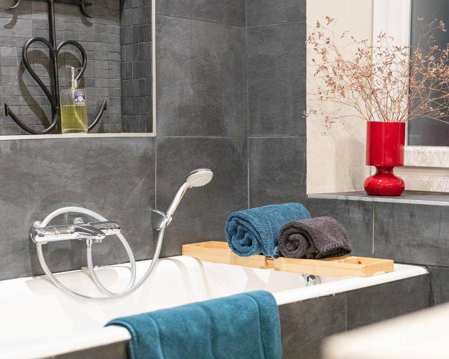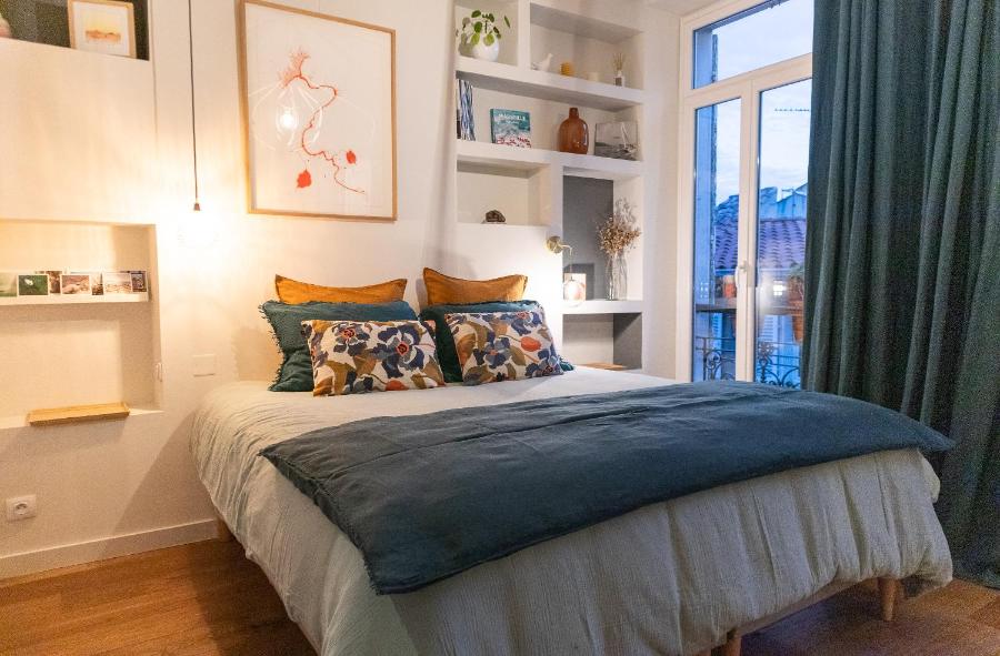 L’appartement se compose d’une grande chambre équipée d’un lit king-size, d’un espace dressing et bureau, ainsi que d’une salle de bains spacieuse avec douche à l’italienne et baignoire. Un petit salon vous permettra de vous détendre, que ce soit après une journée de découverte ou pour savourer un petit déjeuner préparé à base de produits locaux. Ce dernier, servi chaque matin, met à l’honneur les commerces du quartier, avec des viennoiseries, des fruits frais et des jus de fruits, pour un début de journée en douceur. Tout a été pensé pour votre confort, depuis les draps et serviettes fournis, jusqu’à la climatisation et le chauffage qui garantissent un séjour agréable, quelle que soit la saison.