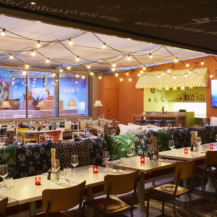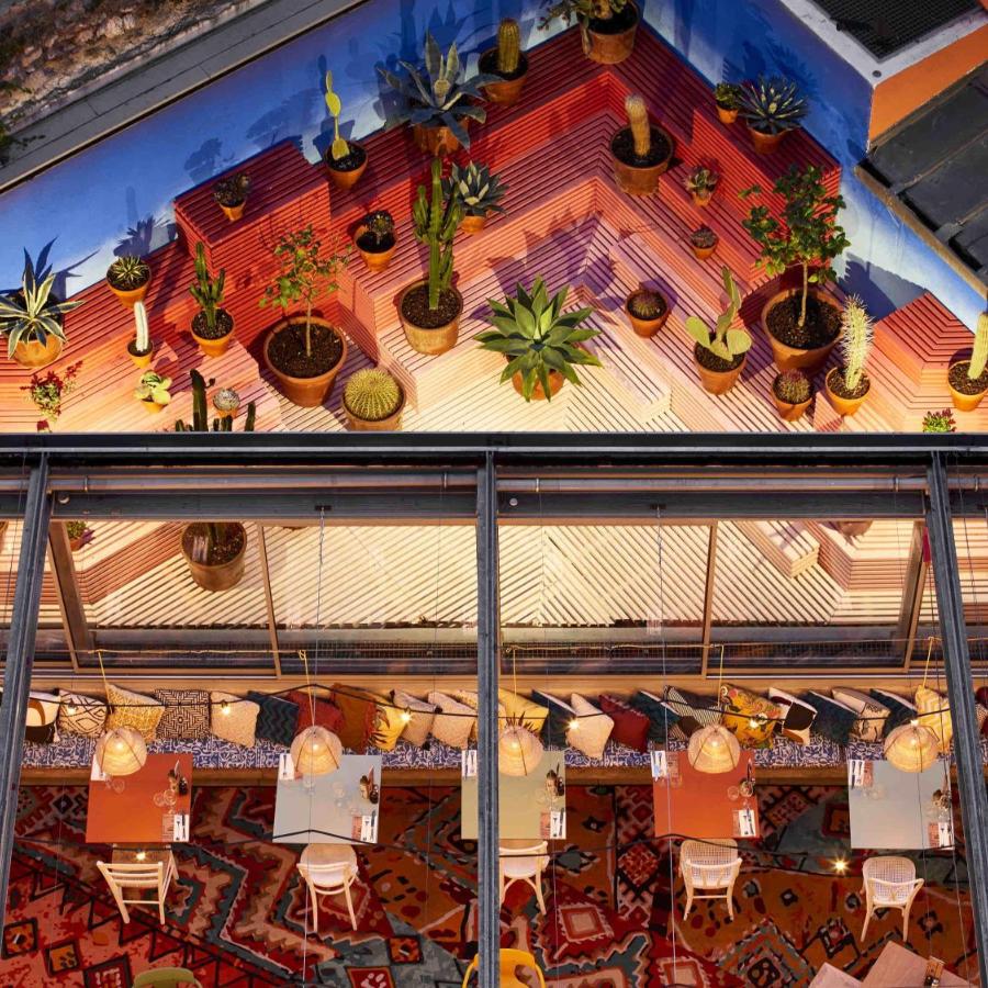 Le restaurant constitue le véritable cœur battant de l'établissement. Long bar, cuisine ouverte, longues tables en bois clair bordées de banquettes recouvertes de coussins multicolores : l'espace crée une atmosphère de copains autour d'un repas partagé. La cuisine méditerranéenne contemporaine y règne en maître, élaborée par des chefs attachés à rendre hommage aux traditions modernes du bassin méditerranéen. La carte propose baba ganoush, salade de poulpe, panisses maison avec spicy aïoli, daurade grillée, calamars en persillade, carpaccio de thon, maquereau à la plancha, thon tonkatsu. Les plats demeurent simples, généreux, abordables, privilégiant les produits locaux et de saison. Un coquillette-jambon revisité fait partie des must de la maison. Le dimanche matin, le brunch dépasse en diversité ce qu'on attend normalement : sucré, salé, raffiné et bien cuisiné, avec des desserts qui méritent leur réputation. C'est l'un des meilleurs brunchs de Marseille, à en croire les amateurs du genre.