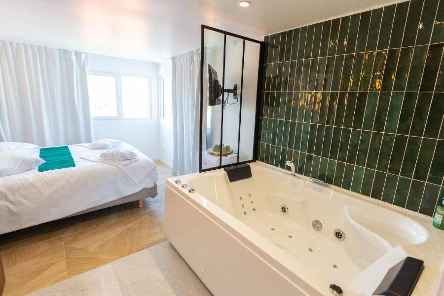 Il cuore dell’esperienza si vive a fior di pelle. In un angolo della stanza, una jacuzzi gorgogliante vi aspetta, promessa di lunghe immersioni fianco a fianco. La temperatura, perfettamente regolata, avvolge il corpo senza bruschezze e favorisce un rilassamento progressivo, profondo, condiviso.